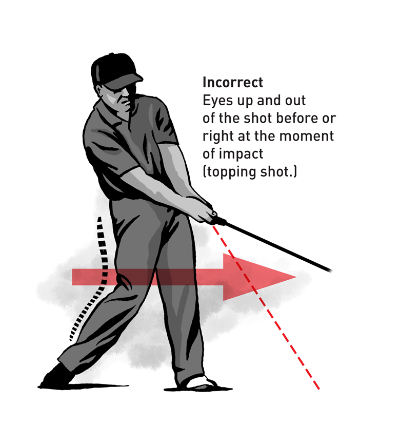 Eyes up and out of the shot before or right at the moment of impact (topping shot)